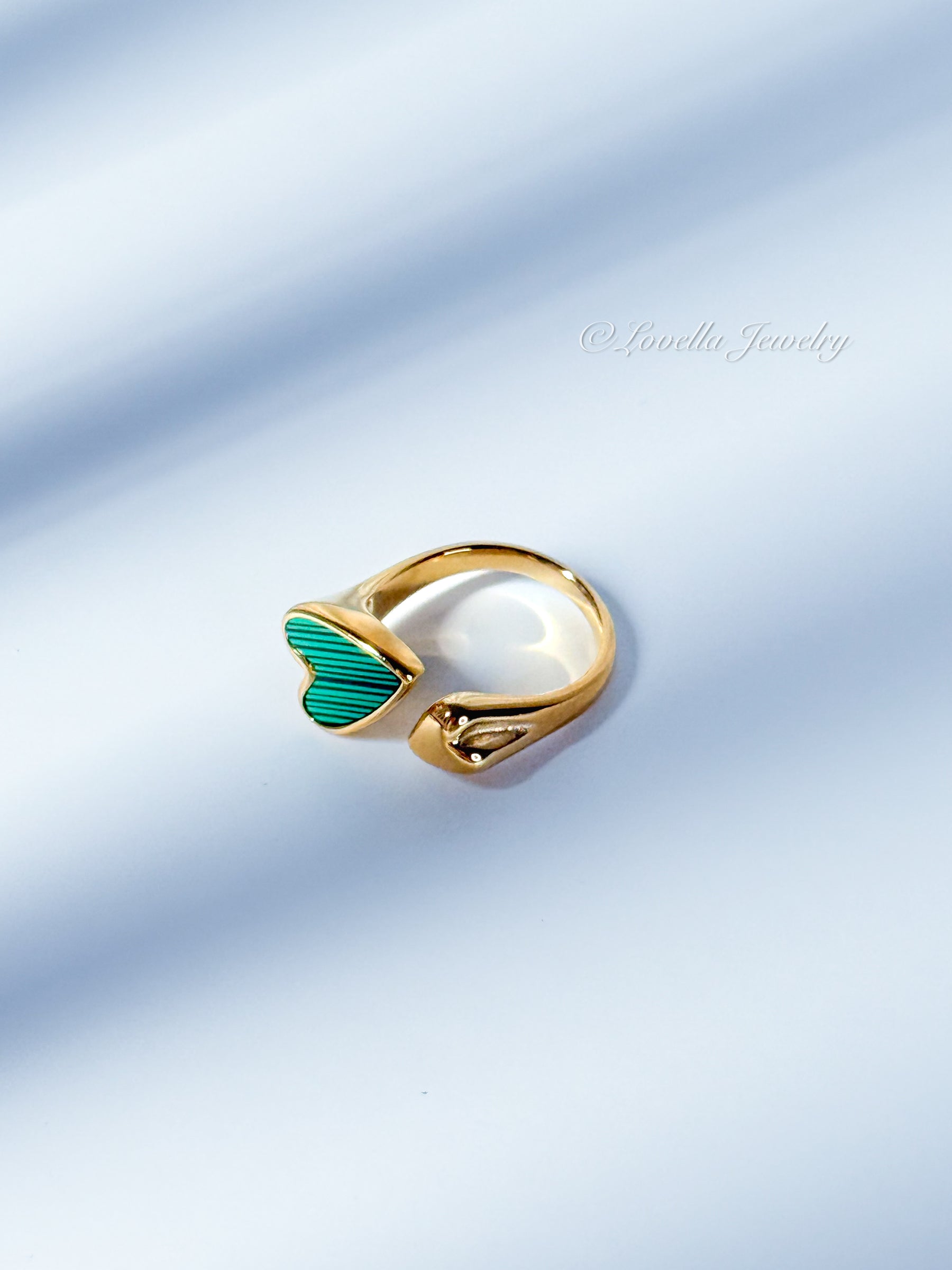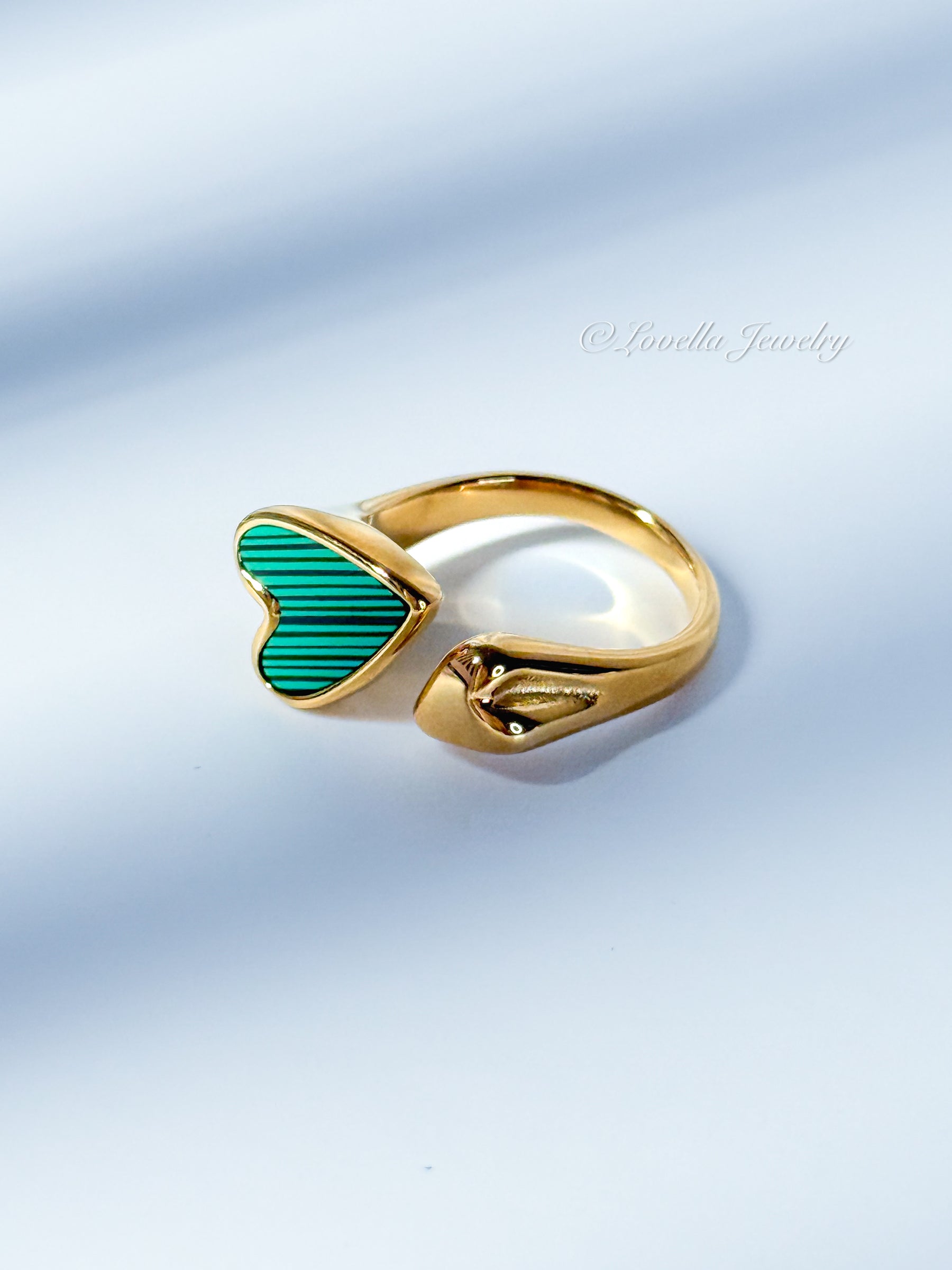 Bring romance and modern charm to your look with our Adjustable Gold Heart Duo Ring. This open design features two hearts —one with a smooth golden finish and the other with green enamel accents— creating a playful yet elegant statement. Made of stainless steel with a polished gold finish, it’s hypoallergenic, durable, and easy to adjust for the perfect fit.